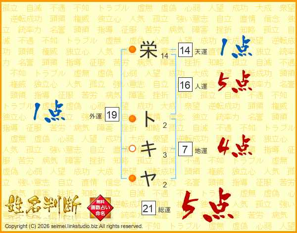 栄トキヤさんの総運は21画の5点!