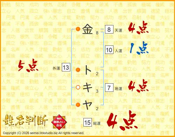 金トキヤさんの総運は15画の4点!