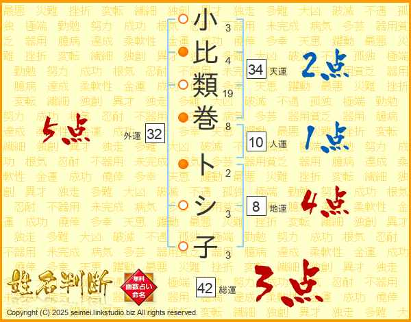 小(3画)比(4画)類(19画)巻(8画) ト(2画)シ(3画)子(3画)