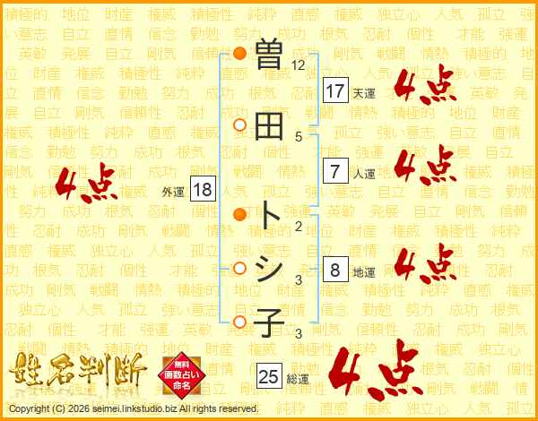 曽田トシ子さんの天運は17画の4点!