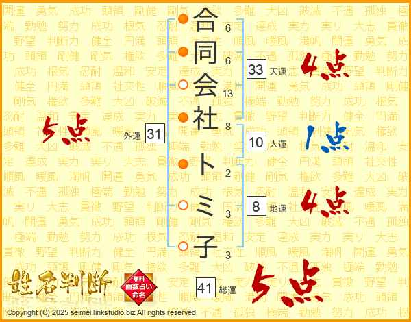 合同会社トミ子さんの総運は41画の5点!