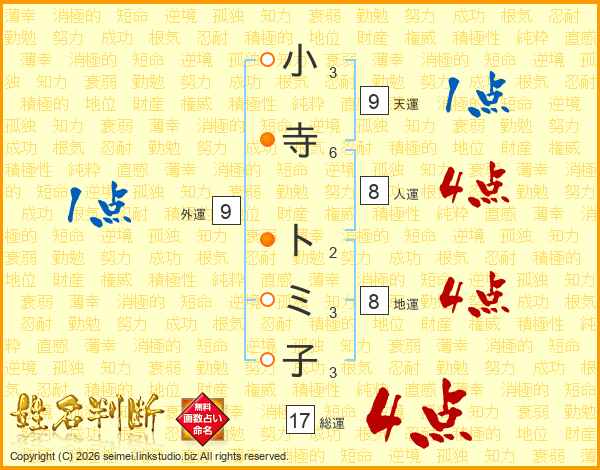 小寺トミ子さんの総運は17画の4点!