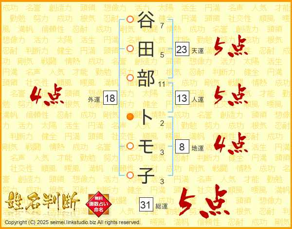 谷(7画)田(5画)部(11画) ト(2画)モ(3画)子(3画)