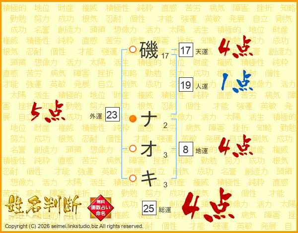 磯(17画) ナ(2画)オ(3画)キ(3画)