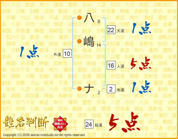八(8画)嶋(14画) ナ(2画)