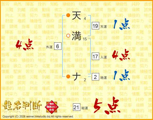 天満ナさんの総運は21画の5点!