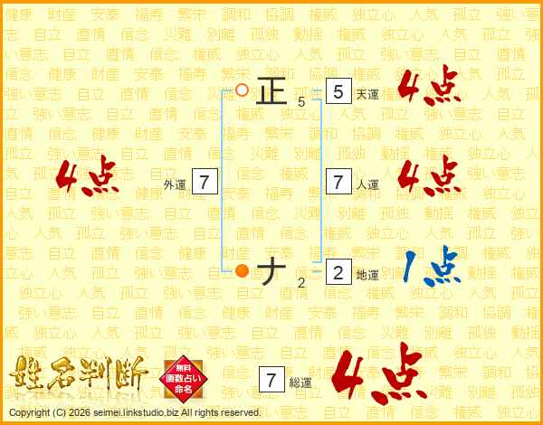正ナさんの総運は7画の4点!