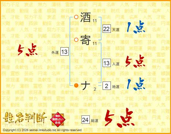 酒寄ナさんの総運は24画の5点!