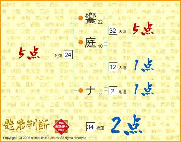 饗庭ナさんの総運は34画の2点!