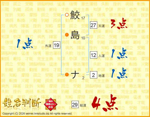鮫島ナさんの総運は29画の4点!