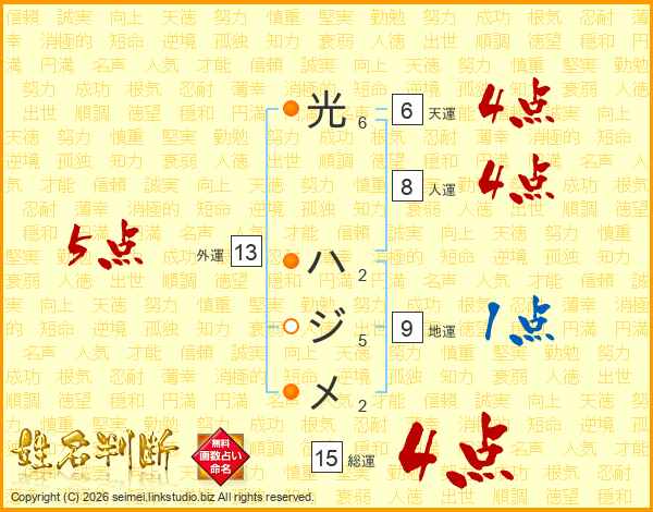 光ハジメさんの総運は15画の4点!