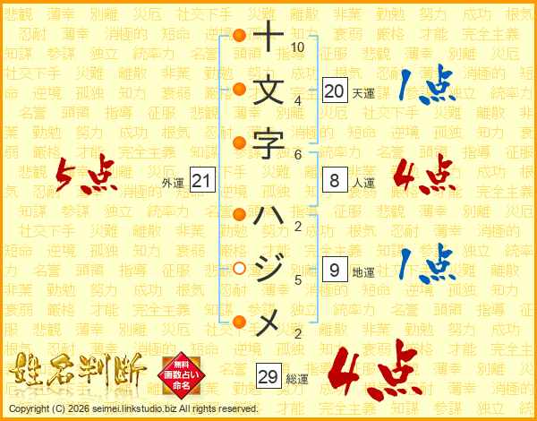 十文字ハジメさんの総運は29画の4点!