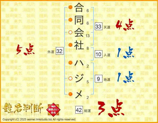 合同会社ハジメさんの総運は42画の3点!