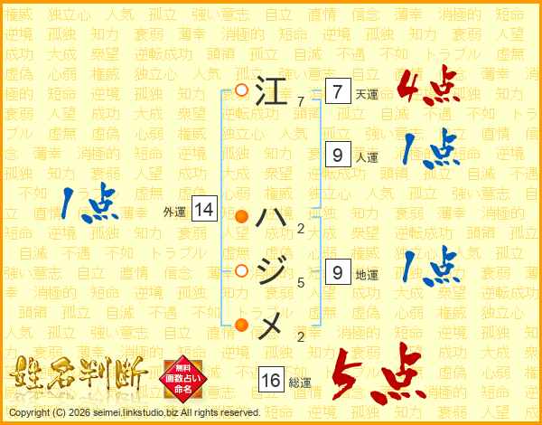 江(7画) ハ(2画)ジ(5画)メ(2画)