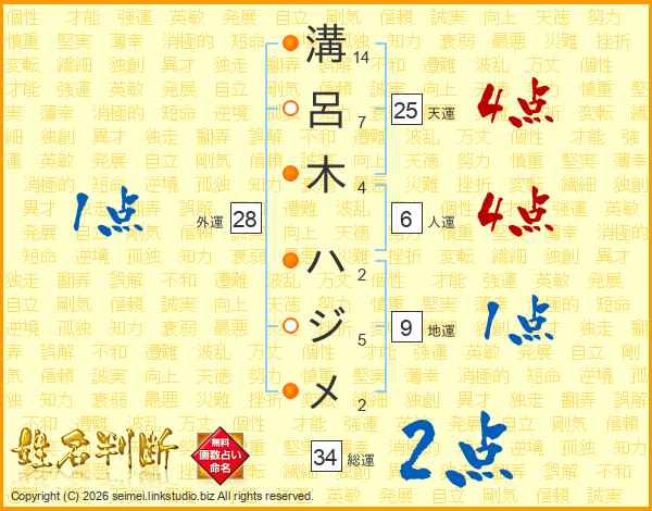 溝呂木ハジメさんの総運は34画の2点!