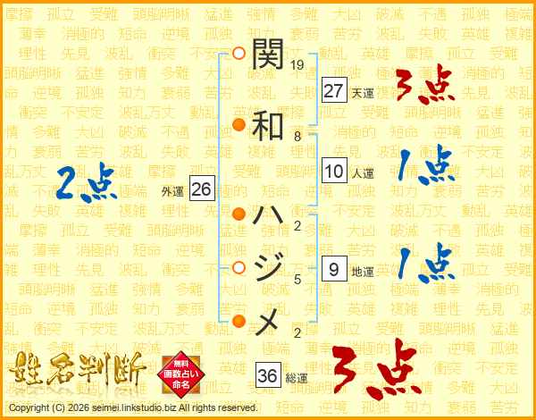 関和ハジメさんの総運は36画の3点!