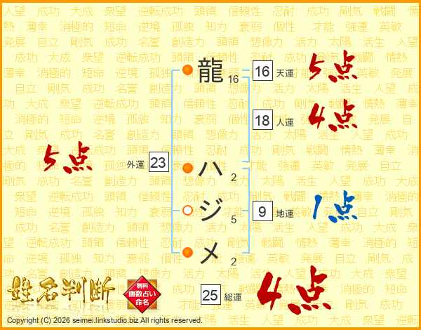 龍ハジメさんの総運は25画の4点!