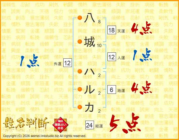 八城ハルカさんの総運は24画の5点!