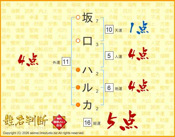 坂口ハルカさんの外運は11画の4点!