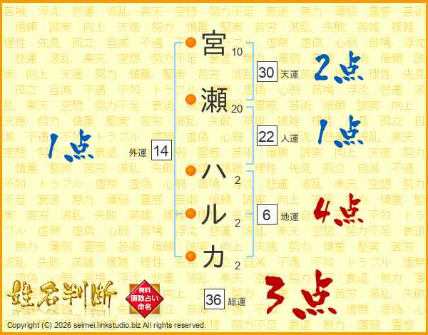 宮瀬ハルカさんの外運は14画の1点!