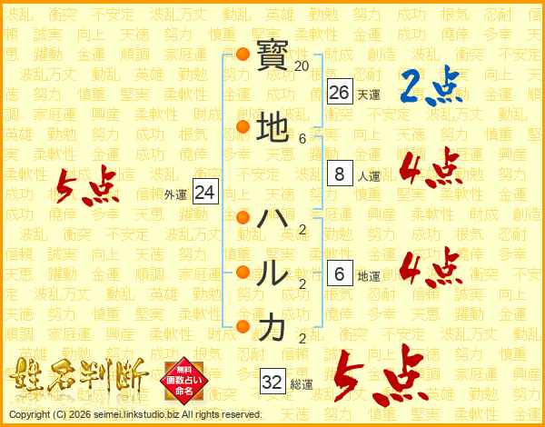 寳(20画)地(6画) ハ(2画)ル(2画)カ(2画)