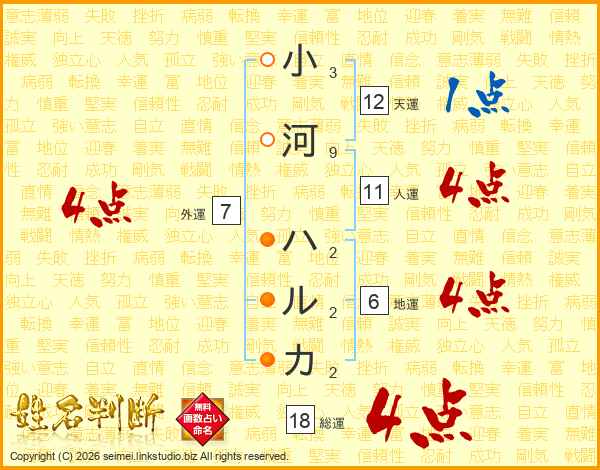 小河ハルカさんの総運は18画の4点!