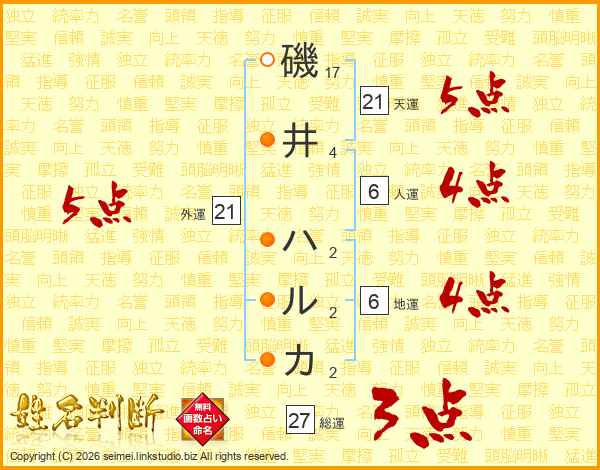 磯井ハルカさんの外運は21画の5点!
