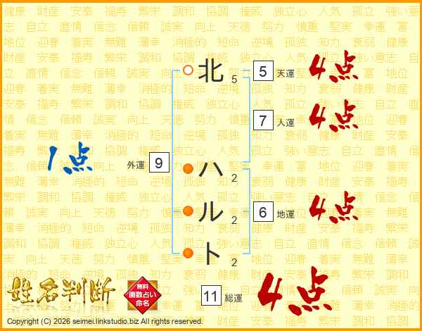北(5画) ハ(2画)ル(2画)ト(2画)