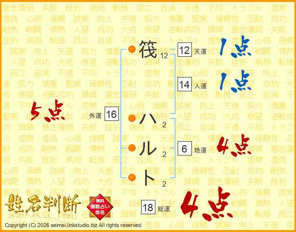 筏ハルトさんの総運は18画の4点!