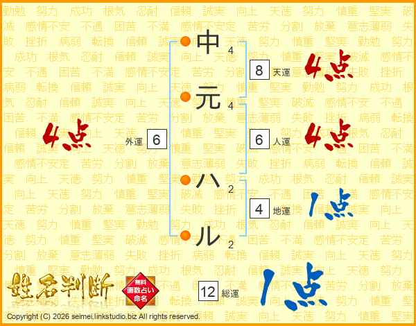 中元ハルさんの総運は12画の1点!