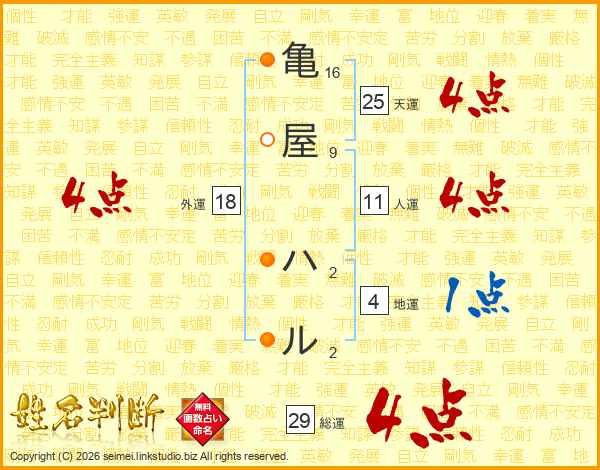 亀屋ハルさんの総運は29画の4点!