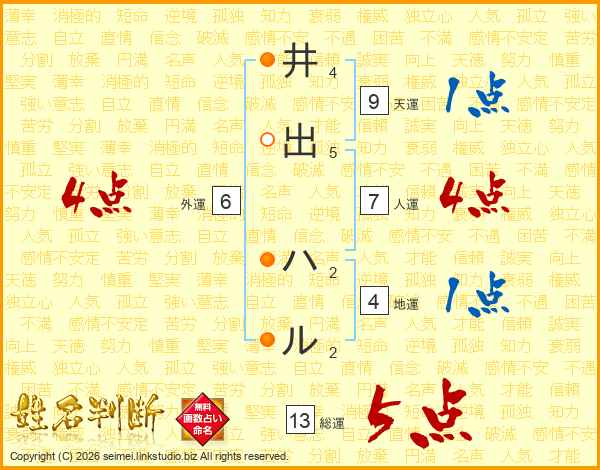 井出ハルさんの総運は13画の5点!