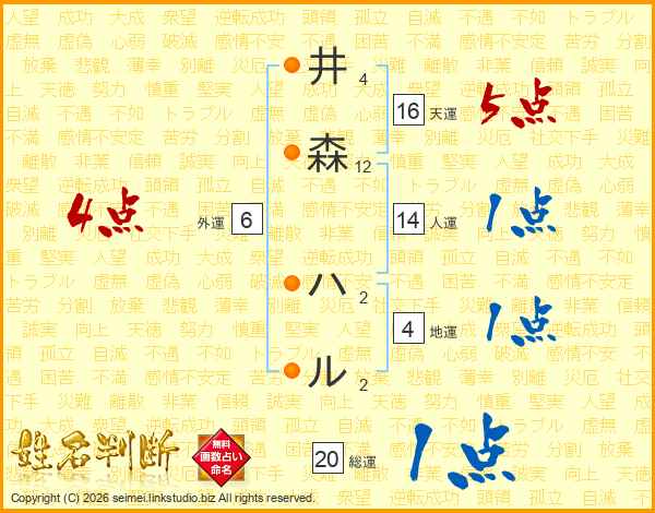 井森ハルさんの人運は14画の1点!