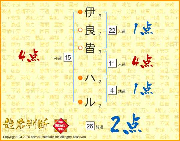 伊良皆ハルさんの総運は26画の2点!