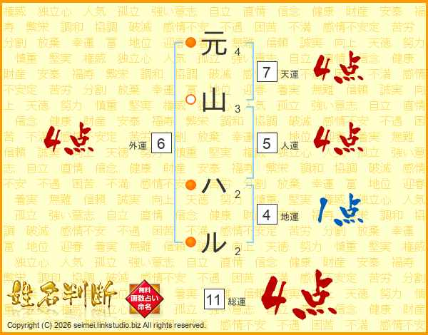 元山ハルさんの総運は11画の4点!