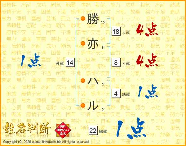 勝亦ハルさんの外運は14画の1点!