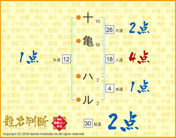 十亀ハルさんの天運は26画の2点!