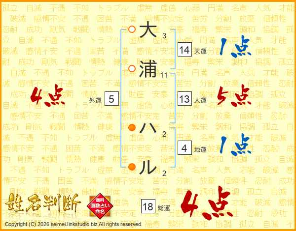 大(3画)浦(11画) ハ(2画)ル(2画)
