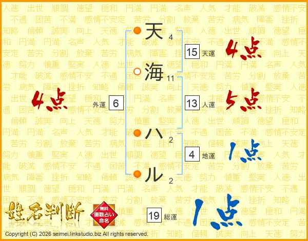天海ハルさんの総運は19画の1点!