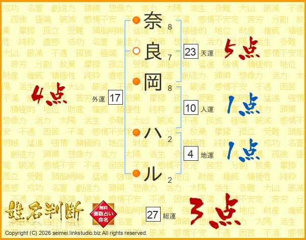 奈良岡ハルさんの外運は17画の4点!