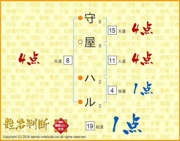 守屋ハルさんの外運は8画の4点!