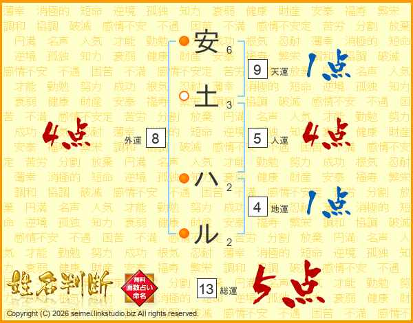 安土ハルさんの総運は13画の5点!