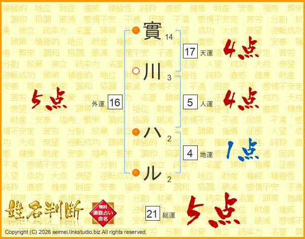 實川ハルさんの総運は21画の5点!