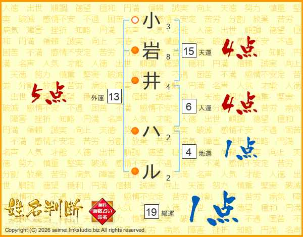 小岩井ハルさんの総運は19画の1点!