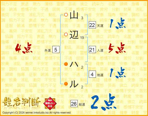 山辺ハルさんの総運は26画の2点!