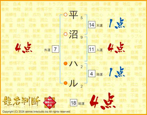 平沼ハルさんの総運は18画の4点!