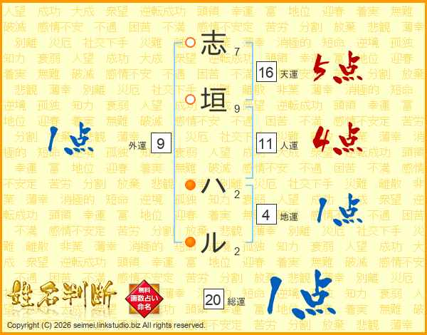 志垣ハルさんの総運は20画の1点!