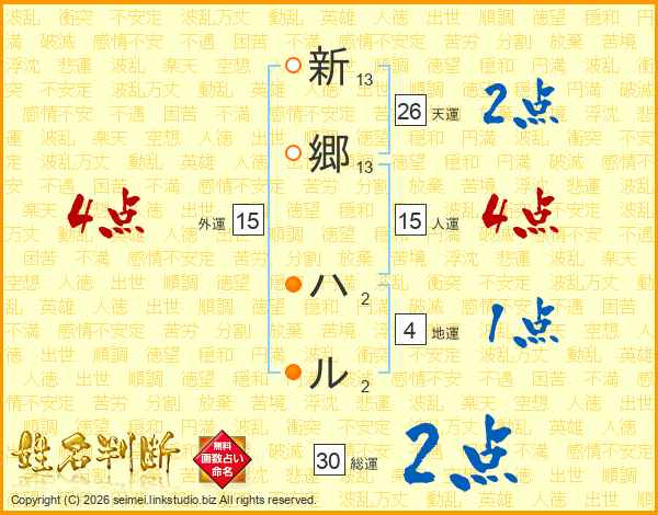 新郷ハルさんの総運は30画の2点!
