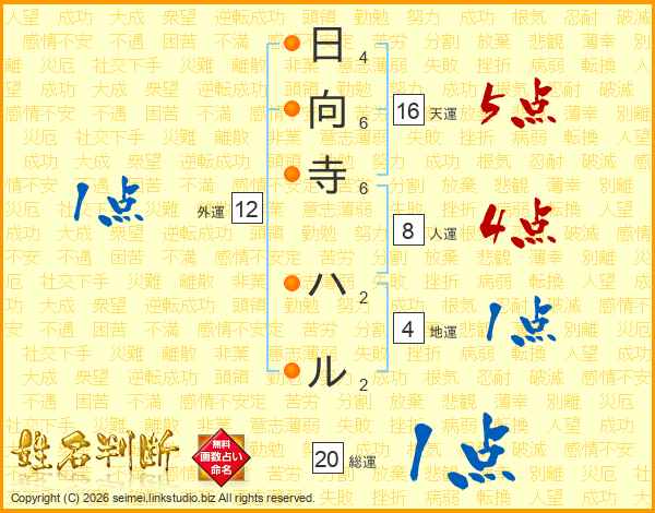 日向寺ハルさんの総運は20画の1点!