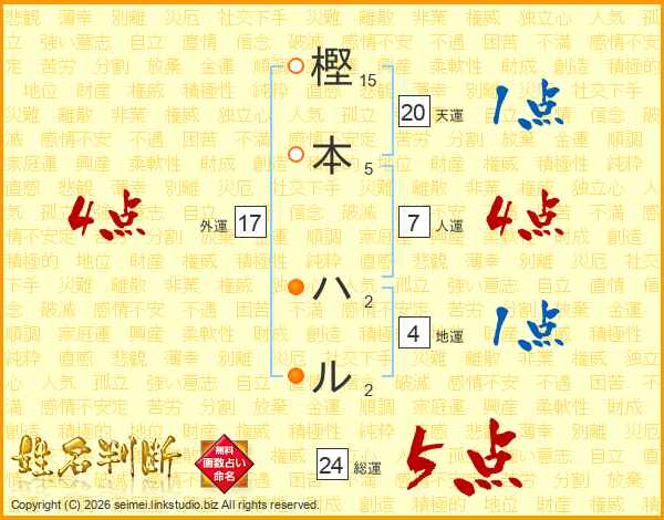 樫本ハルさんの総運は24画の5点!